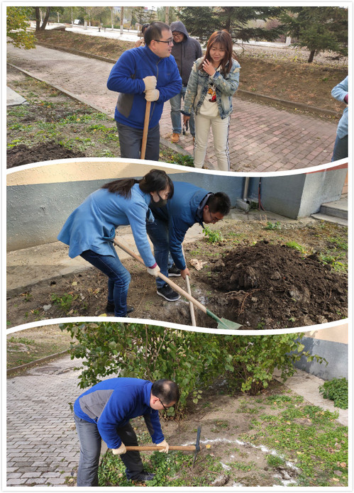 随后,在后勤集团园林科老师的指导下,老师们开始了冬季植树的前期准备工作——挖树坑。现场每一位老师们都热情洋溢、干劲十足,拿着铁锹,比干劲、比进度。活动整体衔接有序,到处都是忙碌的身影和劳动的汗水。